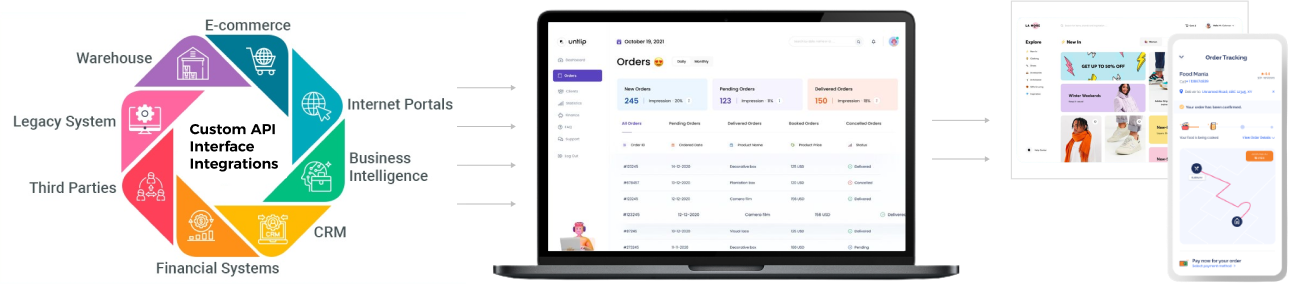 We provide end-to-end web API and mobile API development services using advanced technologies like ASP.NET, Java, etc., enabling communication between multiple systems, databases, and third-party services.
